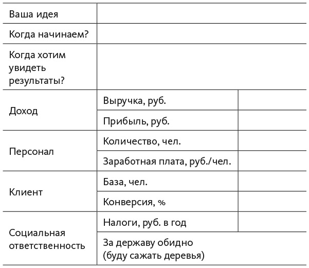 Итак, цель. Очень много информации о целеполагании: как сформулировать, для чего нужна, smart- и star-технологии. Но есть простая форма (табл. 1.3), заполнив которую вы сможете четко представить свою дальнейшую жизнь.