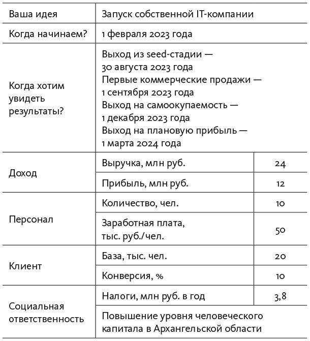 Таблица 1.4. Бизнес-цель: пример заполнения формы