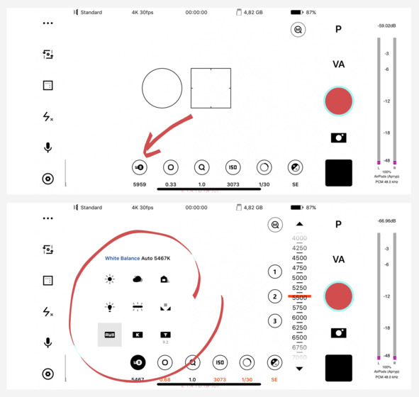 Давайте посмотрим, как настроить баланс белого в Moment, Pro Movie, Filmic Pro и BeastCam: