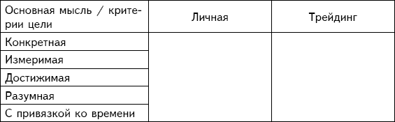 Приведите пример для сравнения цели в трейдинге и в личной жизни. Основная мысль / критерии цели