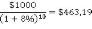 Таким образом, текущая стоимость $1000 через 10 лет при ставке дисконтирования 8 % составляет: