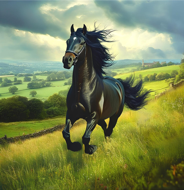 «Иду по бескрайнему полю с высокой жёлтой травой, мои длинные рыжие волосы раздувает тёплый ветерок, дующий мне навстречу, мои голубые глаза сливались с цветом неба, на мне была школьная форма в клетку бело- чёрную. Юбочка до колен, красные кроссовки на ногах, блузка голубого оттенка с клетчатой жилеткой. Я не понимала, что здесь делаю, зачем я здесь? Осмотревшись вокруг себя, увидела, что это обычный летний день, когда солнце, словно наполненное жаждой, изливало свои лучи на землю, передавая тепло и свет. Вокруг пахло свежестью и цветами, а в воздухе порхали яркие и прекрасные бабочки, демонстрируя свои тоненькие и изящные крылья. В этот момент, стоя в самом центре этой благодатной природы, словно оказалась в раю. Все вокруг было полно тишины, спокойствия и невидимой гармонии. Но в этой идиллии всегда скрывается нечто неожиданное, что способно внезапно нарушить покой. Как вдруг, раздался громкий, импульсивный стук копыт, которые с силой ударили о землю, словно желая выразить свою мощь. Этот звук был сигналом к разрушению всей ранее существовавшей гармонии. И вот, в поле, посреди высокой жёлтой травы, появился он – величественное создание, которое было, словно воплощение могучей стихии ветра. Чёрная грива этого существа разлеталась в воздухе, переплетаясь с летним и тёплым ветерком, как будто в танце с природными стихиями. Он бежал с грациозностью и величественностью, перебирая ноги, словно в такт с невидимой музыкой природы. Это было такое яркое и изумительное зрелище, что слова не могли описать его красоту, и возникала мысль, что это можно было бы сравнить с неким чёрным жемчугом— редким и ценным камнем, который олицетворяет в себе царство, где время остановилось в своем беге.