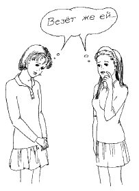 Ведь наверняка при всех материальных трудностях, твои родители, по возможности, стараются обеспечить в первую очередь именно тебя всем необходимым, а не тем, что хочется тебе, потому что у твоей подруги «это есть». Согласись, было бы просто нечестно клянчить у мамы денег на плейер или новый рюкзачок, в то время как она сама ходит в позапрошлогодних туфлях с аккуратными и «почти незаметными» заплатками.