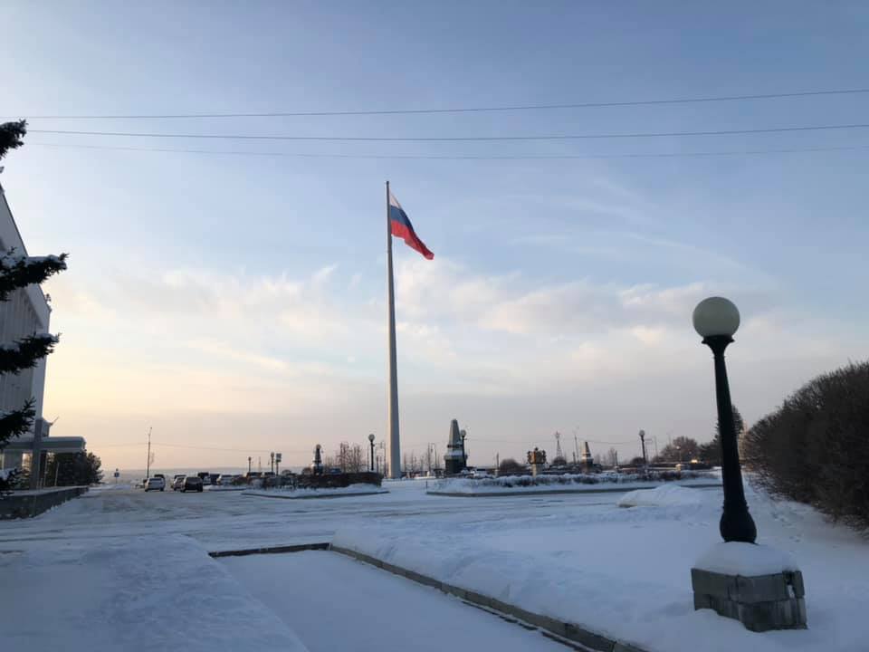 А вот этот пятидесятиметровый флагшток у региональной администрации рядом с набережной реки Томь, хоть убей, не припомню. Или в мою «бытность» его тут рядом не стояло?