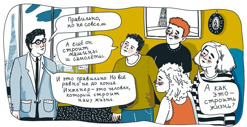 К счастью, это только сон. В нашем мире было много прекрасных инженеров. Одни создавали дома и дороги, другие – машины и самолёты, третьи – компьютеры и телефоны. Получается, что вся наша жизнь, всё, что нас окружает, всё, чем мы пользуемся каждый день, – сделано инженерами. Вот так они и строят нашу жизнь.