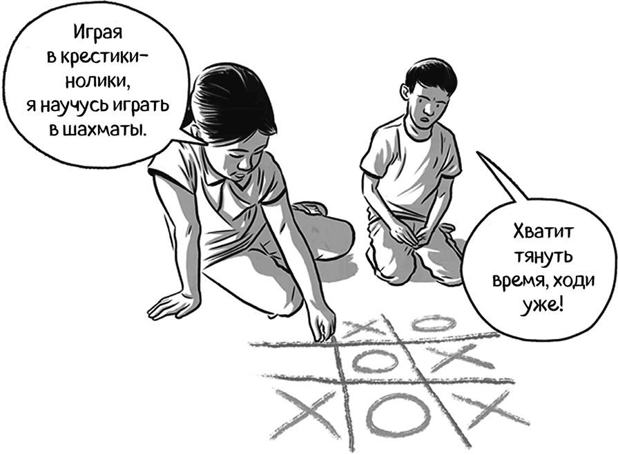 Шахматы – это игра, не поддающаяся доскональному анализу. Поэтому давайте используем упрощенную модель, которая отражала бы некоторые важные детали шахмат: крестики-нолики. Обе эти игры имеют игровые поля и правила. Игроки принимают решения по очереди, выбирая из ограниченного количества возможных ходов.