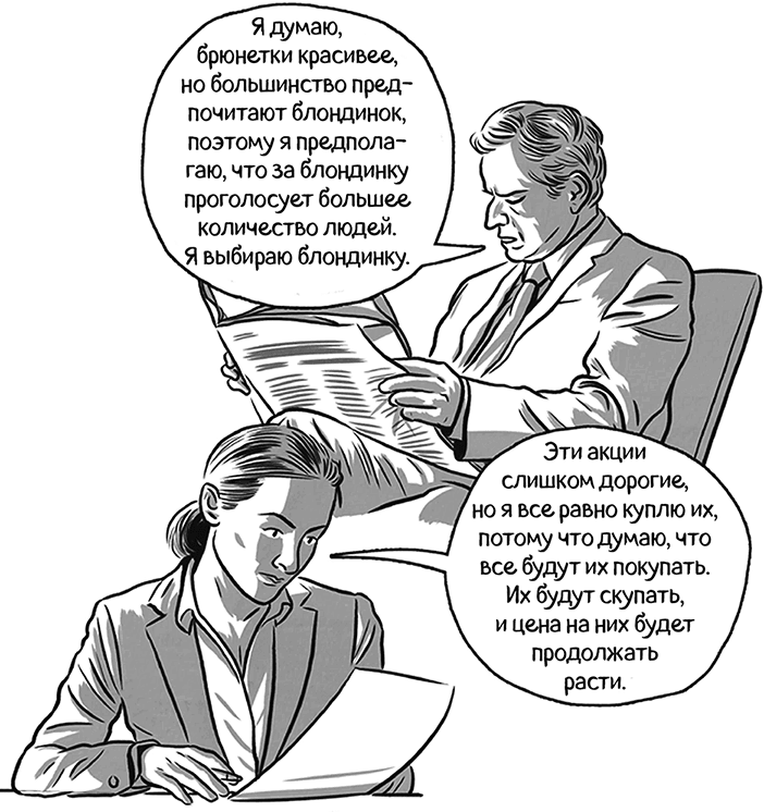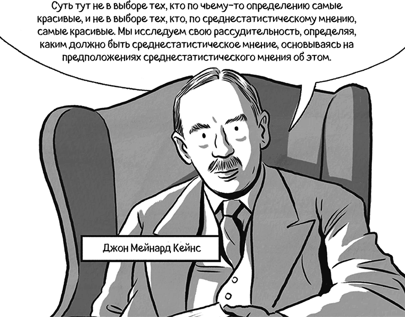 На первый взгляд может показаться, что «Кейнсианский конкурс красоты» едва ли можно сравнивать с финансовыми рынками: тут нет никаких цен, покупателей и продавцов. Но у них есть один важный общий элемент. Добиться успеха на финансовом рынке можно лишь будучи на шаг впереди остальных. Если вы способны предсказать поведение среднестатистического инвестора, вы сорвете куш. Так же и в «Кейнсианском конкурсе красоты»: если вы можете предсказать среднестатистический выбор читателей газеты, вы можете победить.