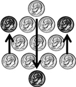 Передвиньте монеты так, как показано на рисунке: видите ли вы теперь треугольник вершиной вниз?