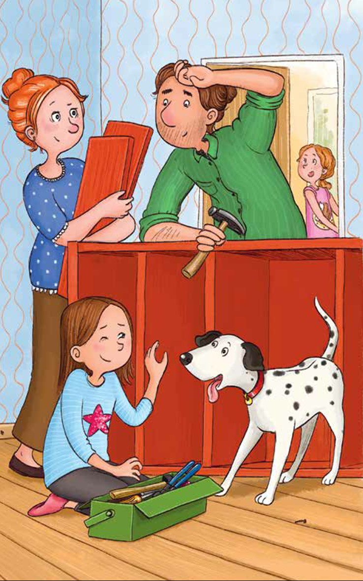 В доме Флидеров стоял ужасный грохот и раздавались звуки дрели. Здесь шёл грандиозный ремонт. Бабушка оставила этот красный дом с белым забором в наследство своему сыну Сэму, его жене Нелли и их детям – Пауле и Лотти, а вместе с домом семья обрела далматина Кляксу. Но кое-что в доме устарело, и родители затеяли ремонт, а все остальные им помогали.