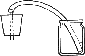Через 10–12 дней смесь процедить и тщательно выжать сок из ягодной смеси. Полученный сок влить в бутыль и поставить в теплое, место для дальнейшего брожения, которое будет протекать 5–6 недель. Во время брожения используется пробка со стеклянной трубкой. Нужно иметь еще и резиновую трубку, один конец которой надеть на стеклянную трубку, а другой поместить в воду (рис. 10).