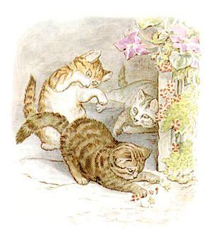 Но однажды их мама – миссис Табита Твитчит – пригласила на чашечку чая дорогих друзей. А пока те не прибыли, она поспешила отнести котят в дом, выкупать и приодеть.