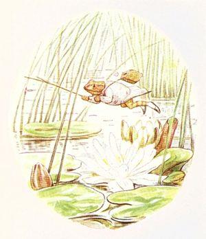 Мистер Джереми надел непромокаемый плащ и пару блестящих галош, взял удочку с ведерком и длинными-предлинными прыжками поскакал к местечку, где держал лодку.