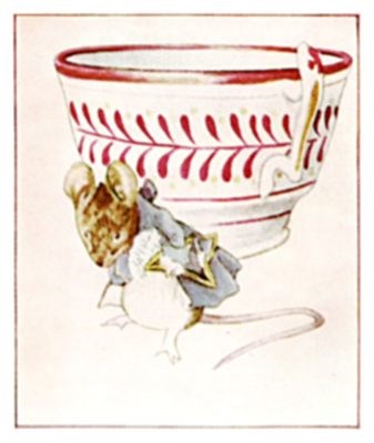 "This is very peculiar," said the Tailor of Gloucester; and he lifted up the tea-cup which was upside down.