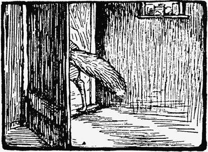 He ran round behind the house, intending to undo the rope in order to let fall the pailful of water upon Tommy Brock—