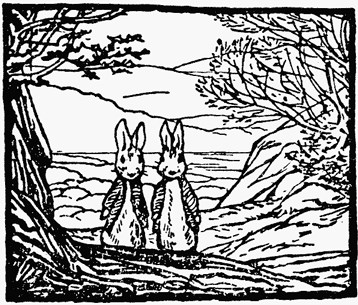 As soon as the coast was clear, Peter Rabbit and Benjamin Bunny came out of the bushes—