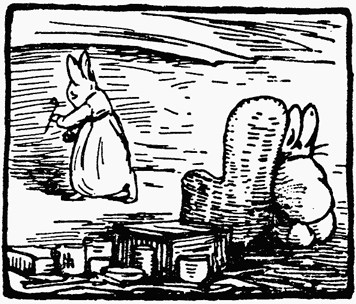 After quarrelling at supper, Flopsy and old Mr. Bouncer had passed a sleepless night, and quarrelled again at breakfast. Old Mr. Bouncer could no longer deny that he had invited company into the rabbit hole; but he refused to reply to the questions and reproaches of Flopsy. The day passed heavily.