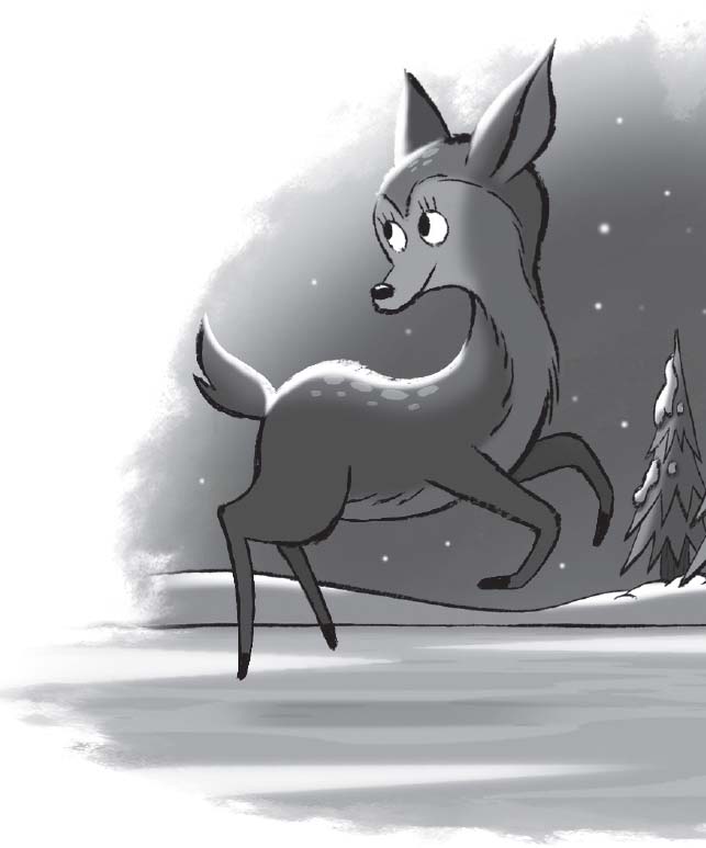 Bobbin’s head drooped as she reached the snowy bank. ‘I know I walk funny,’ she sighed. ‘But you see, all deer learn to walk by watching their mummies … and my mummy only has three legs.’