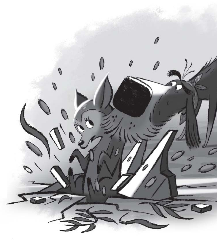 ‘Leave her alone!’ barked Mr Dog. He raced round the bucks and ran in and out of their legs, trying to distract them. But a hard hoof kicked out and smacked against his ribs. Mr Dog flew through the air and crashed against a tree.