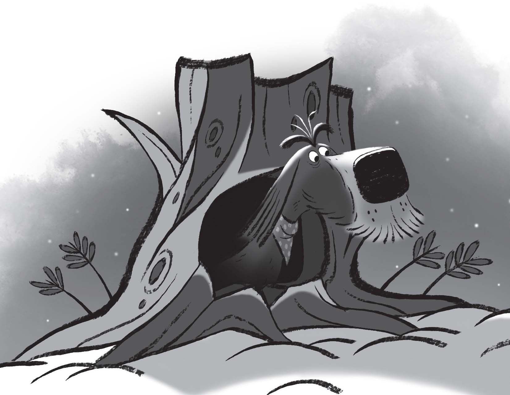 ‘Hold on, I’m coming!’ barked Mr Dog. He hared out of the tree stump and down the hill.