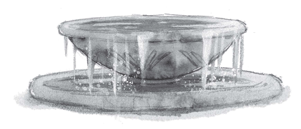 Видимо, Клайв готовился к одному из своих фокусов, поэтому поставил клетки справа и слева от себя на край фонтана. Потом он наклонился, опустил руку в воду и стал водить ею по кругу, всё быстрее и быстрее, так, что получился водоворот. Он взглянул на луну и закрыл глаза.