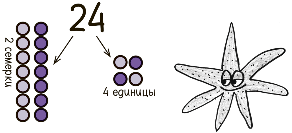 А если бы мы считали семерками, мы обозначили бы то же число как 24: две семерки и четыре в остатке.