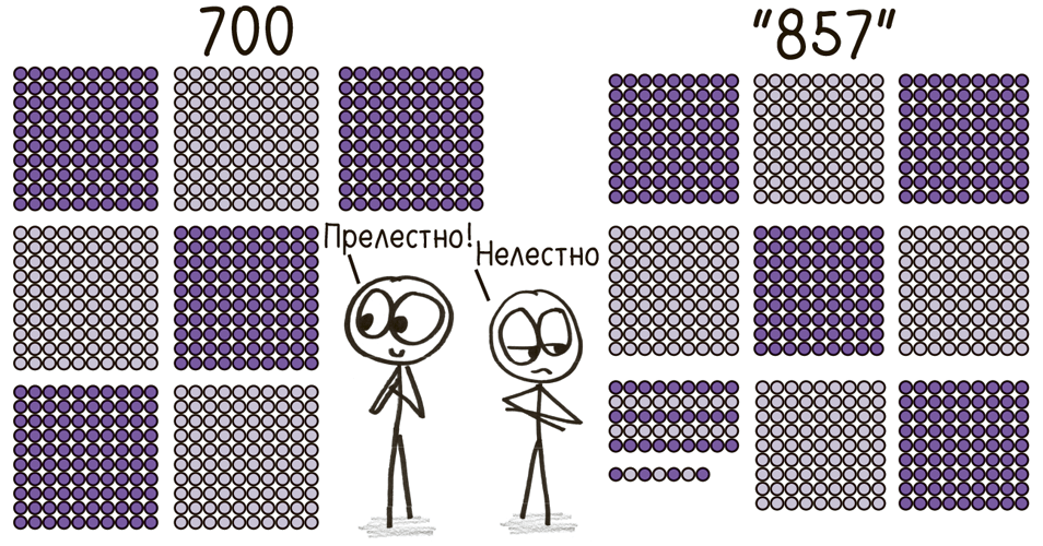 700 (семь групп по 10 × 10) потеряет свое звонкое круглое название. Оно будет уныло зваться 857 – восемь групп по 9 × 9, пять групп по 9 и семь в остатке.