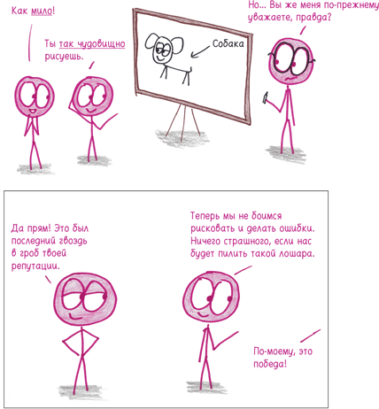 Мой путь художника начался в тот день, когда я нарисовал на доске собачку, чтобы проиллюстрировать решение задачи, и надо мной расхохотались так, как никогда за всю мою карьеру. Моя бездарность насмешила и шокировала школьников, но в конечном итоге они сочли ее по-своему милой. Часто математика похожа на соревнование с высокими ставками; когда безусловный эксперт в этой науке оказывается совершенно бездарен в чем-то другом, это очеловечивает его, а в дальнейшем, возможно, очеловечит и сам предмет, который он ведет. С тех пор самоуничижение стало ключевым элементом моей педагогики; вы не найдете такого совета ни в одной методичке для учителей, но, вы знаете, это работает.
