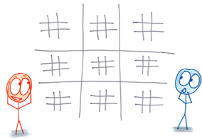 В итоге сценарии игры выглядят эксцентрично: игроки легко теряют по два-три крестика или нолика на одной линии. Как будто звезда баскетбола упускает открытую передачу и кидает мяч в толпу. Но в этом безумии есть метод. Игроки думают на несколько ходов вперед, в зависимости от того, что предпринимает противник. Осуществив хитрую атаку на мини-поле, вы остаетесь в дураках на большом поле, и наоборот – это-то и вносит напряжение в процесс игры.