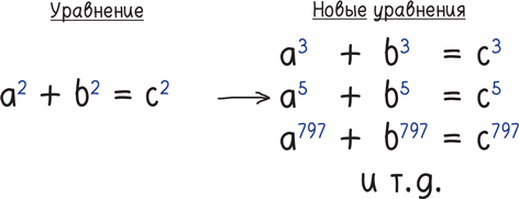 Вся история математики снова и снова иллюстрирует этот тезис. Логические головоломки изобретают, решают и изобретают снова. Например, что произойдет, если я подправлю знакомое уравнение и заменю двойку на другое число: 3, или 5, или 797?
