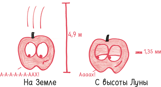 Бросьте «астрояблоко» с высоты, на которой находится Луна, и за первую секунду оно переместится чуть больше чем на один миллиметр. Это толщина прекрасной во всех отношениях кредитной карты.