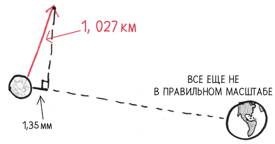 Как все это работает с нашим отважным лунным яблоком? Ну, это задача для математического анализа, так что возьмем бесконечно малый момент – одну-единственную секунду путешествия. На таком коротком отрезке изогнутую линию орбиты можно считать прямой линией.
