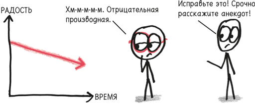 – Отрицательная производная означает, что значение уменьшается. Для некоторых функций – например, личного долга или физической боли – хотелось бы иметь отрицательную производную. Но в случае со счастьем – да, это не очень хорошо.