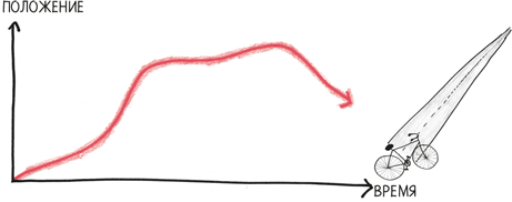 Как мы уже видели на примере велосипеда, производной положения является скорость. А производная скорости? Это ускорение. (Его также можно назвать p´´, или «p два штриха».)