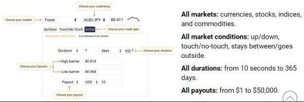 Unii brokeri oferă unul sau mai multe dintre aceste tipuri de opțiuni, precum Touch, Range sau Boundary, Rise and Fall, Touch Not etc.