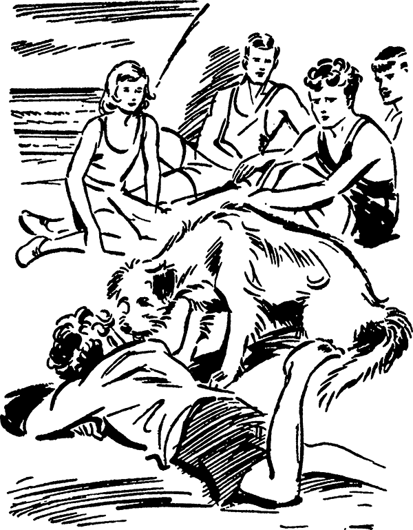 Вдруг Джо упала на живот, закрыла лицо руками и принялась громко и отчаянно скулить, изображая несчастного потерянного щенка, голодного, холодного, всеми заброшенного. Это уже Тим вынести не мог. Он встал и подошёл к Джо. Он стоял над ней, склонив морду набок, совершенно озадаченный. Потом вскинул голову и коротко заскулил сам. Затем он потрогал Джо лапой, оставив на спинке её кофточки песчаную дорожку, и наконец нагнулся и лизнул девочку куда-то в ухо. Джо тотчас вскочила и принялась обнимать собаку.