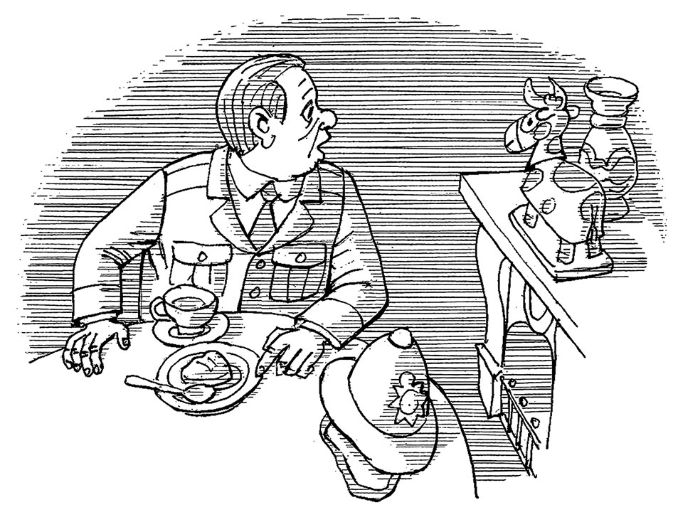 «Му-у, му-у, му-у», – раздалось со стороны камина, где корова покачивала головой, и у констебля отвисла челюсть.