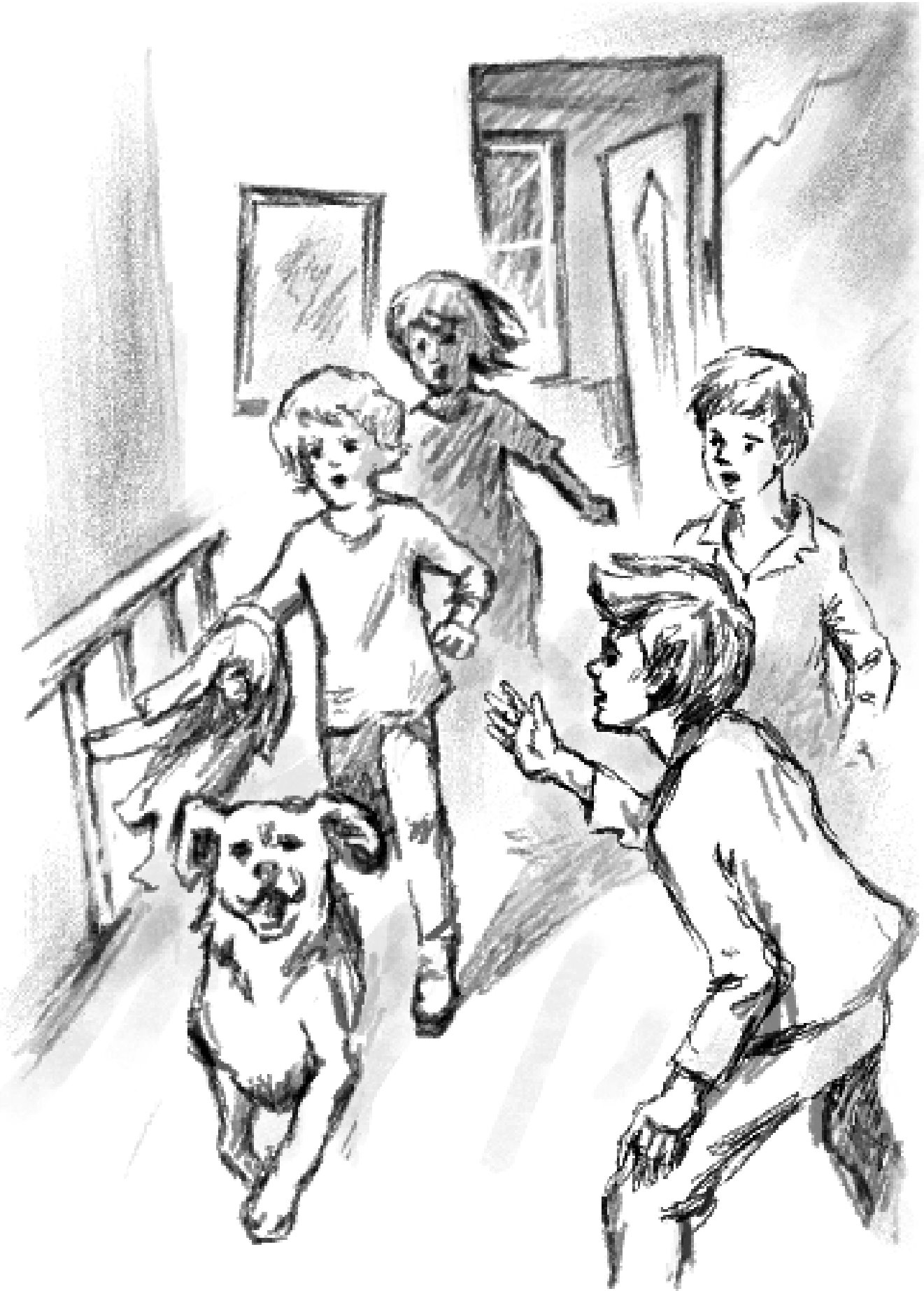 Uşaqların dördü də birdən sanki oxdan çıxmış yay kimi yataqlarından atılıb otaqlarından çıxdı. Timmi də Corcun çarpayısından yerə sıçradı və hamıdan qabağa düşdü. Uşaqlar qaçarkən ona ilişib yerə yıxıldılar, bir anda hamısı hamamın qapısında üst-üstə qalaqlandı. Bu vaxt pilləkənlərdə Kventin əminin ayaq səsləri eşidildi və onların beşi də səssiz-səmirsiz öz otaqlarına keçdi.