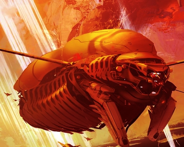 Прежде всего, эта штука, оказалась здоровенной – может, и поменьше германских цеппелинов, но уж точно не уступающая размерами самому крупному из наблюдательных аэростатов или, скажем, британских „блимпов“. Ну, знаешь, тех, двухместных, у которых вместо гондолы висит фюзеляж от самолёта с мотором? Только этот не был похож ни на блимп, ни на привязной баллон – скорее, на несуразно огромного жука-плывунца, только не черного, с металлическим отливом, какими они бывают в природе, а ярко-алого цвета. Какое-то время он шёл прямо на меня, и я обратил внимание что „анфас“ эта штука тоже как плывунец – формой напоминает двояковыпуклую линзу, и даже, вроде, лапки-вёсла имеются, с чем-то похожим на полупрозрачные красные перепонки. Не подумай, Жиль, я не был пьян! Перед полётом – ни-ни (вот потом, дело другое, а как же!), и если эта штука мне померещилась, то вместе с десятком других парней из нашей эскадрильи, которые вместе со мной рассматривали приближающуюся каракатицу, не очень-то веря своим глазам.