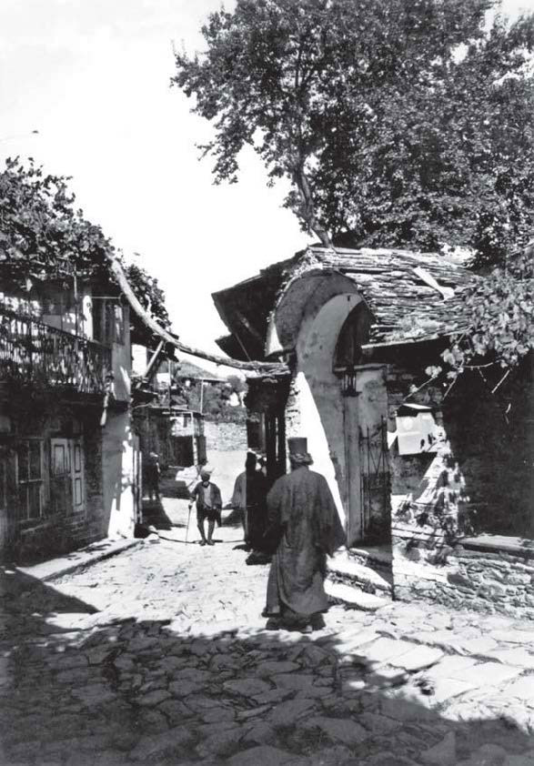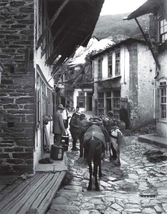Никогда я не видал города, подобного Карее, никогда, конечно, не увижу. Мы шли узенькими, извилистыми улицами мимо иногда очень живописных домов, нередко голубых (любовь Востока), с выступающими балконами, увитыми виноградом, иногда под [защитою] защитой (от дождя) галереи. Вот лавка, другая. Можно купить монашеский подрясник, икону, резную ложку, разные вообще вещи. Дверь открыта. И войти не возбраняется. Но никого в лавке нет – как и на улице, как, кажется, вообще в городе. Что это, неразрушенная Помпея? Нет, жители все же есть. Их только очень мало: монахи да несколько греческих купцов. Они гнездятся в глубине домов. Можно и лавочника получить, надо лишь пройти в переулок, а там направо, постучать в дверь, и он придет продать вам цветную открытку или афонские четки. Но не встретишь в столице Афона женщины. Город одних мужчин, единственный в мире.