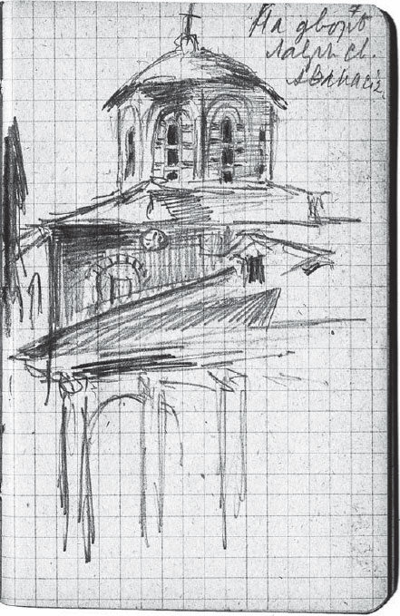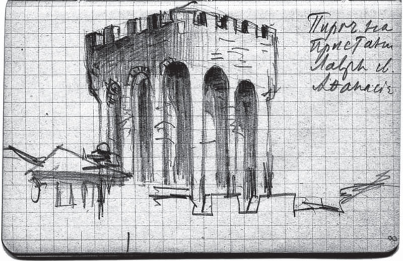 «На дворе Лавры Св. Афанасия». (Записная книжка, л. 7)