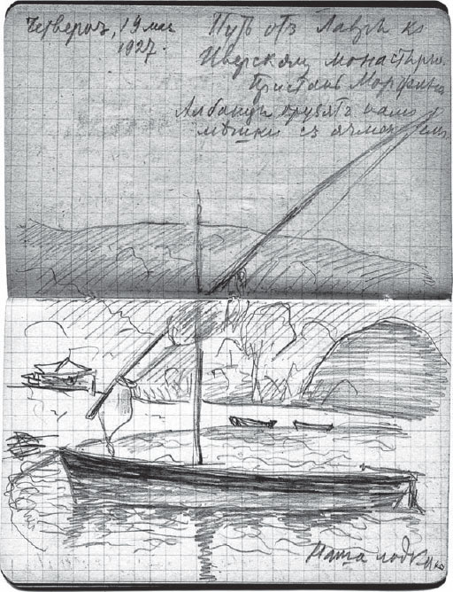 Наша лодка. (На пристани Морфино [?]. Записная книжка, лл. 8 об. – 9)