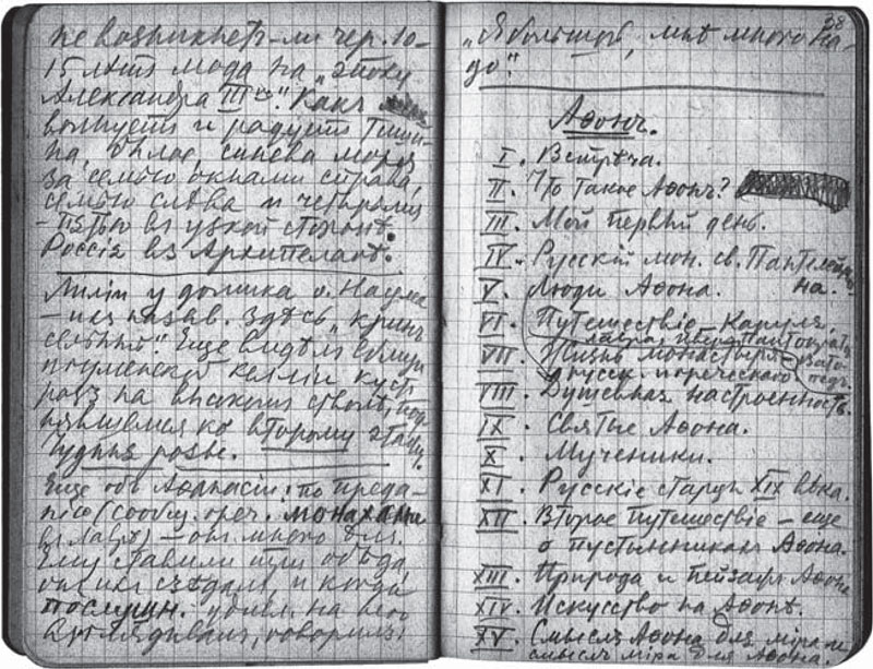 Первоначальный план описания путешествия по Святой Горе (Записная книжка, лл. 37 об. – 38).