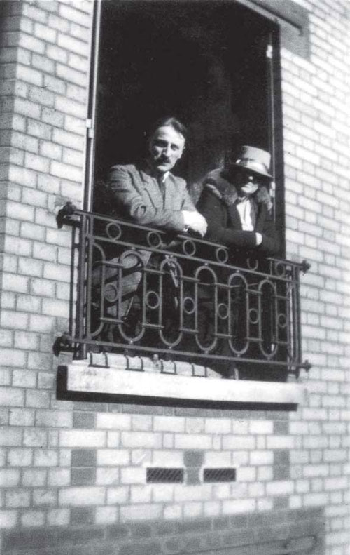 Б. К. Зайцев и В. А. Зайцева в окне своей квартиры на 11, rue Claude Lorraine. 1928 (?) г.