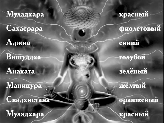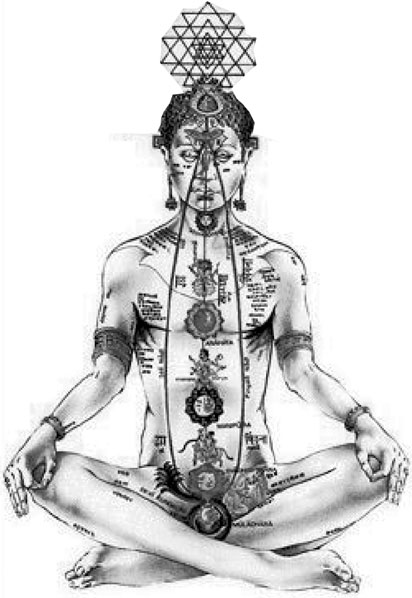 Согласно индийской традиции, на человеческом теле есть семь энергетических центров (чакр), которые расположены по средней оси тела и имеют точную локализацию на поверхности тела.