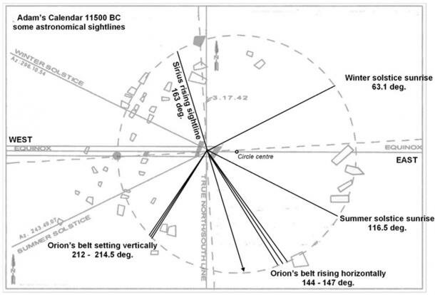 6. План календаря Адама Родни Хейла с выравниваниями, как они были в 11 500 году до нашей эры (andrewcollins.com), (из статьи [1])