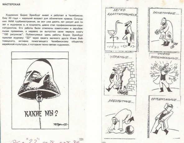 План моей научной работы оказался под угрозой, и я попытался брыкаться. То ли мои брыкания были не вполне убедительны, то ли необходимость была действительно серьезна, но пришлось смириться и, скрепя сердце, начать удовлетворять систему. При этом все свободное и несвободное время я посвящал рисованию, благо бумаги для черновиков хватало. Помянутая выше область творчества «Рисунки на обложках тетрадей» расширилась «Метками на оборотах циркуляров». Со временем я притерся на новом месте, но качественный скачок успел произойти: вылупился карикатурист…