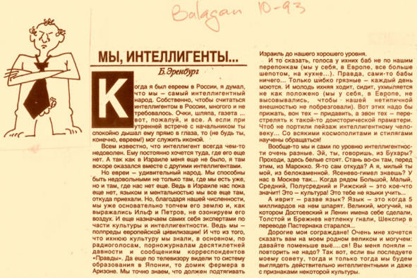 Помнится, как в «Огоньке» товарищ, ответственный за отбор «улыбок художника», внимательно посмотрел на меня сквозь очки и многозначительно произнес: «Дааа, у всех у вас, юмористов, одинаковый диагноз»…