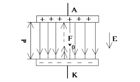 Agar elektrodlar orasidagi potentsiallar ayirmasi U, ular orasidagi masofani d desak, maydon kuchlanganligini, deb yozish mumkin: