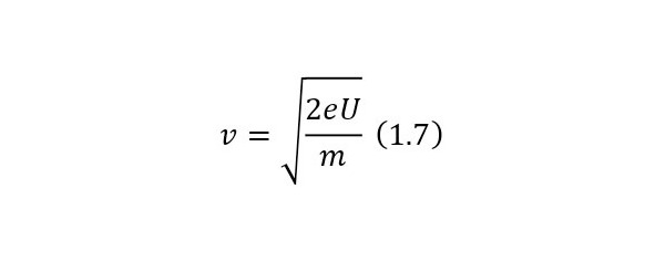 Elekronning boshlang’ich tezligi v0 < Agar U=1 Volt desak elektron energiyasi bir birlik energiyaga teng bulib, u elektron – Volt (ev) deb ataladi. Yuqoridagi ifoda (1.4) dan e va m larni o’rniga qo’yib dan elektoronning tezligini topish mumkin. Shunday qilib tezlatuvchi maydonda elektronning xarakati potentsiallar farqiga bog’lik ekan. Elektronning boshlangich energiyasini eletkron – voltda quyidagicha yozish mumkin. Potentsaillar ayirmasi U=1 voltda, tezligi v=6*105 m/s va U=100 Volt bo’lganda esa v=6*106 m/s bo’ladi. Elektronning elektrodlar orasida masofa d=3*10—3 m va kuchlanishi 100 Volt bo’lganda uchish vaqti 10—8 s ni tashkil qiladi. Elektr maydoni bir jinsli bo’lmagani uchun elektronning xarakati murakkab bo’lib amalda bu vaqt t=10—8 – 10—10 C ga teng.