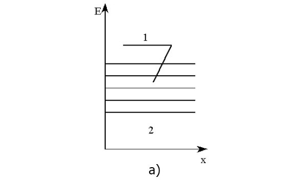 b – berkituvchi qatlamlarning hosil bo’lishi, v – yarim o’tkazgich chegarasidagi kontakt potentsiallar farqi.